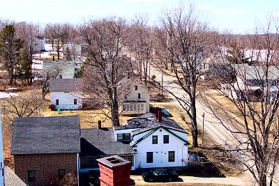 ![]() This picture was taken last week from the bell tower of the Stewart Library Building. The view is of the St. Albans Road (Pleasant St.). |