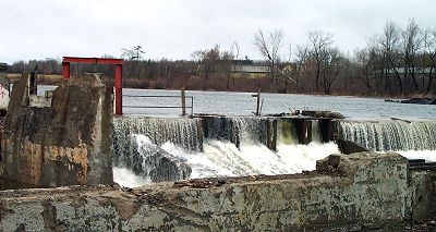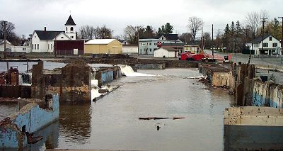 Remember this from last April. A few days of heavy rain produce high water in the mill pond with water running over the top of the dam.