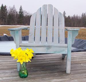 Here's the weather chair, dressed for Spring. However, if the weather forecast is correct, the chair is ahead of the season. We will get snow tomorrow.