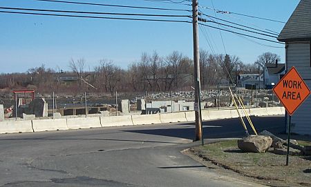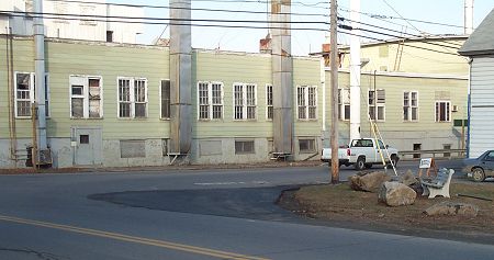 Taken April 17, 2000 Here's another picture from the category of "what isn't there anymore". This is the view from the Newport Road (Route 7) just as you turn the corner onto Main Street. Below is a comparison view taken before the demolition of the front section began.