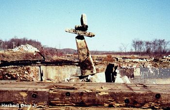Demolition Art How many of you were lucky enough to see this? For a few minutes, the week before last, this sculpture appeared in the middle of the site. Made from pilings and broken pieces of concrete, it stood 12 to 15 feet tall. It didn't last long but my father happened to be there with his camera to get this picture. I'm impressed by the talent and control it took to balance these blocks in this way. We don't know who assembled this bit of demo art but we want to thank the builder for his effort and sense of humor. It was a nice touch...a little beauty and wonder in the middle of the demolition. |