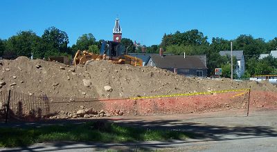 Yes...I know, this is a picture of a pile of dirt. But, it's such a big pile of dirt! This picture was taken from Route 222 just off Main Street. The contaminated soil removed from Areas 2 and 3 won't be decontaminated for some time. It maybe next summer before that is done. This pile will be used to build haul roads and fill in the excavation holes. |