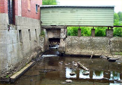 This is the Lower Dam at the old Moosehead Mill site. You can see that the gate is open, water is flowing through unobstructed. There have been discussions of permanently breaching this dam, but I don't think any decision has been made yet. If contamination is found here, this area will part of the next phase of the clean up. |
