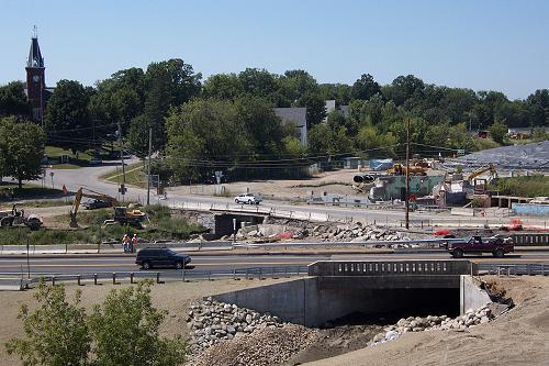 There is no water flowing under the new bridge, not yet. But, there is traffic on the above-side.
