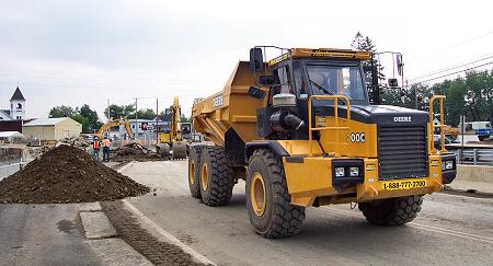 The articulated dump trucks are back in town. Remember them from last summer? These trucks are used to carry the contaminated soil from the excavations out to the stock pile area. |