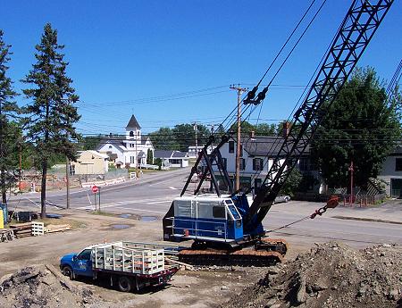 The Cianbro crane that has been a fixture for so many months in Corinna, left town yesterday.