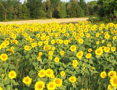 This photo was not taken in Corinna. That is unusual for us, but I couldn't resist. Down on the Ridge Road in Newport there are two fields of these beautiful sunflowers growing, seen here facing the morning sun. |