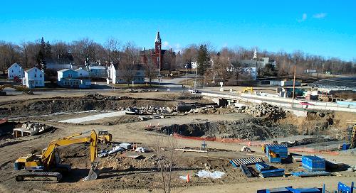 Here we are looking across the cleanup site on the south side of Main Street on December 9, 2000. The area looks a little less like a war zone than it has recently. |