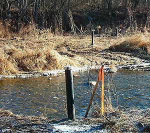 set of four wells drilled in a line across the old river bed. They have