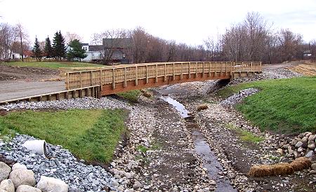 Here's a picture of the completed recreational trail bridge across the stream bed. After two years of disruption, the trail is now back to a new normal leading through Corinna. |