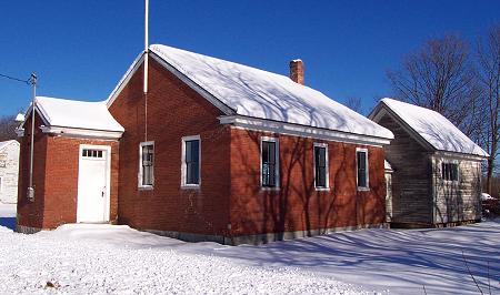 The Morses Corner School House Built in 1831, this is the oldest public building in Corinna. It was constructed with bricks made in a local brickyard. Before the railroad came through the village in the mid-1800's this area was the center of the town. Three stores and a post office were also nearby. |