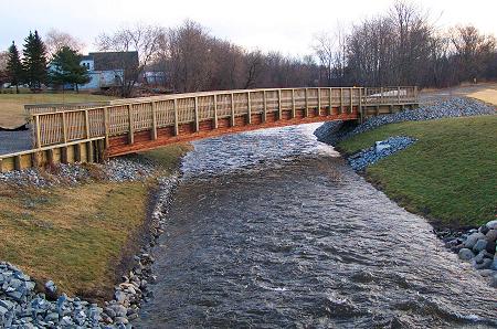 There is plenty of water flowing in the East Branch this week. This picture of the recreational trail bridge was taken a few days ago, before today's snow storm.
