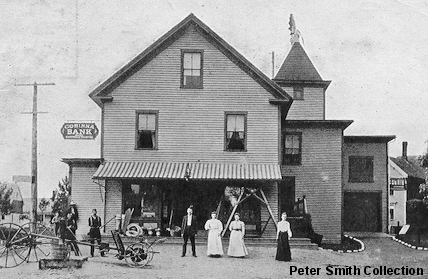 From 1892 until 1917, John Gray ran a hardware store in this location at the corner of the Dexter Road and the Exeter Road in Corinna. The building was also the location of a bank, the Corinna Branch of the Waterville Trust Company. The building was torn down in 1952 and replaced by Pitcher's gas station. The site is currently owned by Lister Petroleum. |
