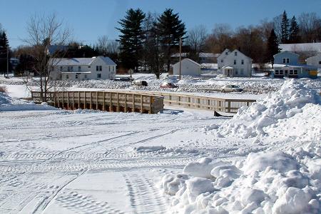 It was 15 degrees below zero with a light breeze at 5:00 a.m. this morning. This photo, looking toward the Newport Road, shows the recreational trail bridge over the East Branch of the Sebasticook River.