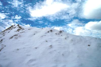 I could tell you that on a recent trip to the White Mountains I took this picture of a snow covered, rocky peak. That would not be true. This picture came from downtown Corinna, the day after a recent snow storm. This is the top of a pile of dirt beside the Odd Fellows Hall on the Stetson Road.