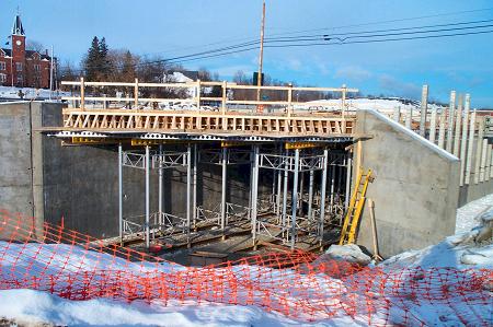 The roadbed of the new bridge becomes more substantial each day.