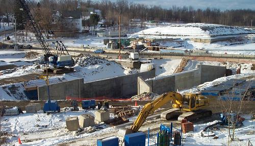 Remember what the village area looked like in January of 2001? This picture of the Route 7 bridge, under construction, was taken from the top of the huge pile of dirt that sat by the Odd Fellows Hall on the Stetson Road for most of that year. The Cianbro crane was a fixture in town for months. |