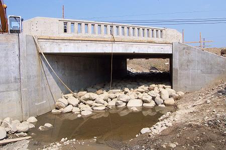 This is the down-river side of the new bridge.