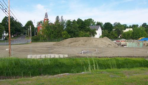 This is where the mill used to be. In this photo we are looking across the new river channel toward the west side of the village area in Corinna. The trees in front of the Stewart Library Building line the east edge of Winchester Park. Part of this area will be the location of the new park. The Park Committee is asking for your help in naming the new park. Send your suggestions to the Guest Book, here on The Cattail Press. |