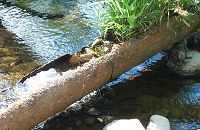 in the pipe from an opening upstream. Just a little further downstream, the top part of the pipe has rusted away to form the "planter" you see here. Notice the grass growing in what is left of the pipe. |
