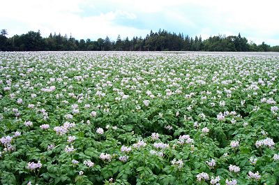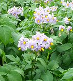 Different varieties have blossoms of different colors. Some are white. These have a lavender color with bright yellow centers. Potatoes are an important crop in this part of Penobscot County and north of here in Aroostook County. |