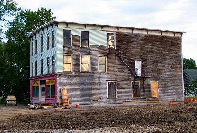 The Odd Fellows Hall in its new location on the Stetson Road.