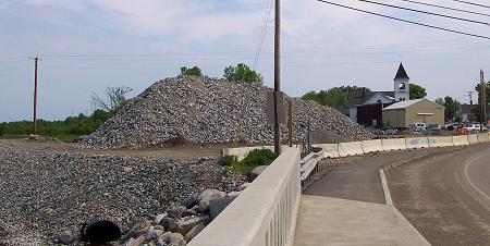 This pile of crushed rock sits on the east side of the new stream bed.