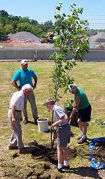 helped plant a red maple to commemorate the town's partnership with