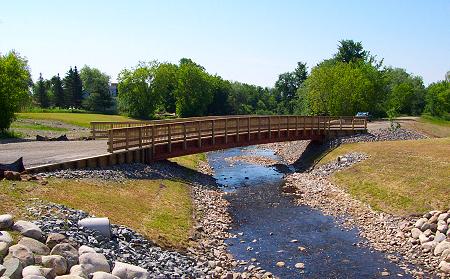 The recreational trail bridge just beside Route 7 in downtown Corinna