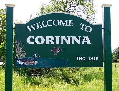 Signs like this, welcoming folks to Corinna, have been installed on the roads that enter town.