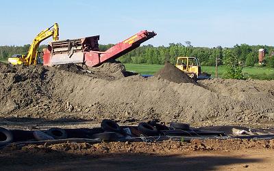 Meanwhile, back at the clean up site, the soil decontamination operation is moving right along. A good portion of the stock pile has been processed already. This equipment in the pile prepares the soil before it goes to the decontamination bins. |