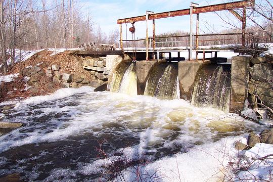 Water is flowing in many places in Corinna. Here is a picture of the dam at Southard's Mills, more commonly know today as the Swim Front on the Alder Stream. |