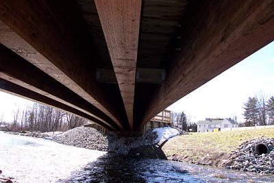 Maybe some of you are interested in knowing what the bottom side of the new recreational trail bridge looks like. Well, maybe no one is really interested...but here it is. One of those pictures I couldn't resist taking. Five beams run the full length of the structure. To learn more about the company that built the bridge, follow this link to the web site of York Bridge Concepts. |