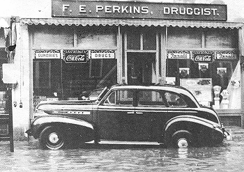 caption from this picture says that F. E. Perkins' Drugstore is in the