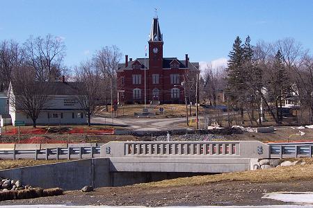 From the new Route 7 bridge, this is the view looking across the cleanup site up toward the Stewart Library Building in Corinna. Most of our snow is gone. Seems like an early Spring. |