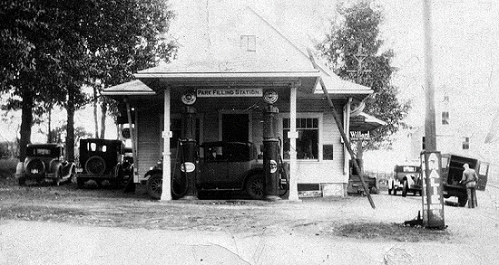 The Park Filling Station sat just below Winchester Park on Main Street in Corinna. In this picture the park would be to the left. The station was directly across the street from Dr. Redman's house on the corner (later owned by my grandfather). Can anyone tell when this picture was taken and who operated the station at the time? Although I suspect this building was long gone, the cars parked on the right in the photo from March 23 are sitting just in front of this location. If you know more about this location, I invite you to share your stories in the Guest Book. |