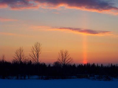 Click on the picture to download a copy for wall paper. My son Gavin took this picture just after sunset yesterday. He was attracted by the interesting shaft of light extending up from the sun as it went below the horizon. |