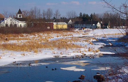 This is the view from the Corundel Dam (Upper Dam) looking downstream toward the village area. As cold as it has been this winter, this portion of the stream just below the dam has remained open. Many ducks have spent the season here. |