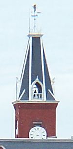 This picture of the clock tower was taken Thursday from Elliot Street. I'm not sure if that is a new clock face up there. It's not in the proper place. Notice is it lower than the face visible on the Pleasant Street side.