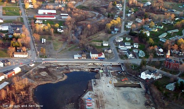 Click on this picture to view a larger copy This photo was taken last week during the latest plane ride with Tim Briggs. It shows the entire area where the new river channel and new Route 7 section will be. Compare this with the Site Layout Plan from the EPA. It will give some idea of how the new Corinna will look. |