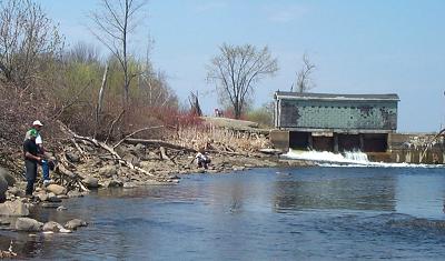 Sunday was a beautiful day here. The sun was warm. Leaves were just beginning to grow on the trees. A few people took advantage of the weather to go fishing near the Upper Dam. |