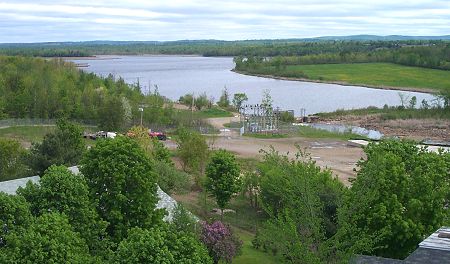 This picture was taken from the clock tower on May 29. I can never get enough of this view to the North. The size of The Bog, Corundel Lake, amazes me. To the left of the water, there is a large area of cattails not visible in this photo. It is prime wildlife habitat. Inland Fisheries and Wildlife is now responsible for the upper dam. It's good to know that with all the changes happening in Corinna this area will be preserved. |