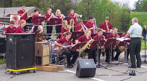 The Nokomis Jazz Ensemble, directed By Stan Buchanan, and the Nokomis Jazz Combo, directed by Jack Clifford, played a Memorial Day concert of 30's and 40's dance tunes at the Coles Transportation Museum in Bangor on Monday. |