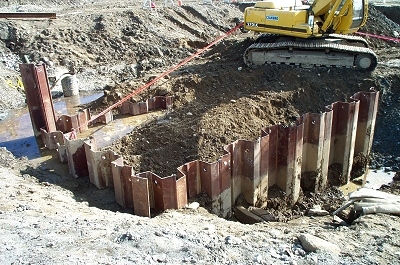 If you drive through Corinna, you will see digging for the bridge abutment on the south side of Main Street. However, the barriers block your view of what is happening down in the hole. Here's a look in. The street was behind me as I took this picture on Saturday morning. Be cautious as you drive through town. The changes in the road have created some strange traffic patterns, especially at the east end of Main Street. |
