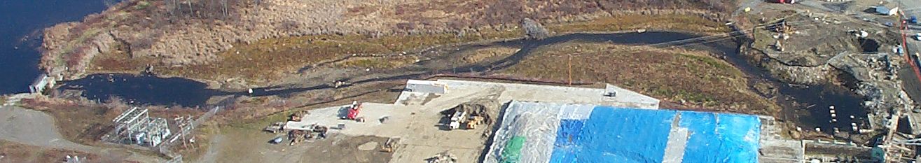 Click on this picture to see a larger copy. This aerial photo, taken Saturday, shows the East Branch of the Sebasticook River in Corinna from the Upper Dam to the Middle Dam. This is what used to be the Mill Pond. |
