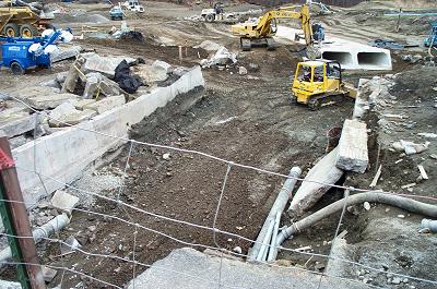 This is a view of the old river bed. The picture was taken looking down from Main Street at the area that use to be under the Odd Fellows Hall. Soon it will be a river bed again, for the winter. |