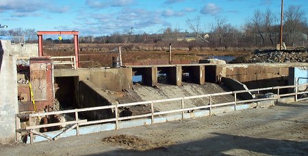 In this picture of the Middle Dam, just north of Main Street, you can see that the pumps are gone. Water is running again under the flood gate on the right. Next year this dam will be removed when the river is diverted to the new channel. Follow this link to see how the dam looked last April and many years ago. |