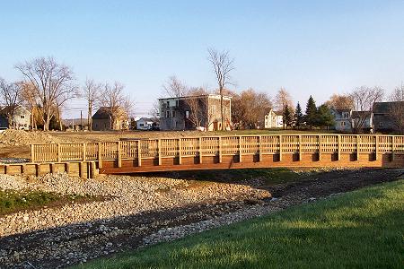 The new recreational trail bridge is complete. It looks very nice and fits well into the landscape.