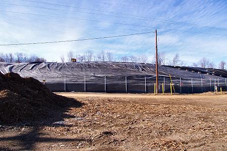 Meanwhile, way out back at the new contaminated soil containment area, the pile is growing! I took this picture while standing beside the electrical substation not far from the Upper Dam. All of the contaminated soil will soon be moved to this location for the winter. I would say the pile covers almost an acre of land. The object at the top of the pile is the upper part of a dump truck, mostly hidden behind the pile. |