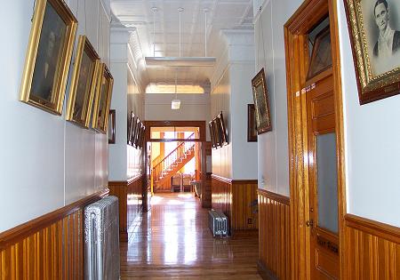 This is the downstairs hallway crossing the Stewart Library Building. The stairway at the further end is on the West Main Street (Nokomis Road) side. The building is now more than 100 years old, As you can see, it has been well cared for. |